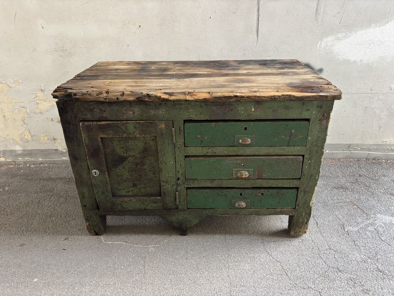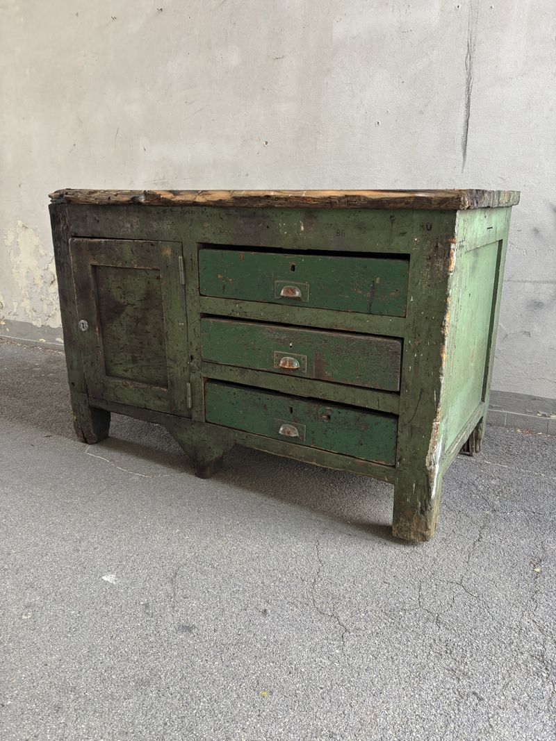 Banco da lavoro industriale vintage H80 L300 P70cm – SOLO NOLEGGIO