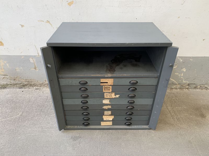 Cassettiera tipografica vintage H96 L90 P55