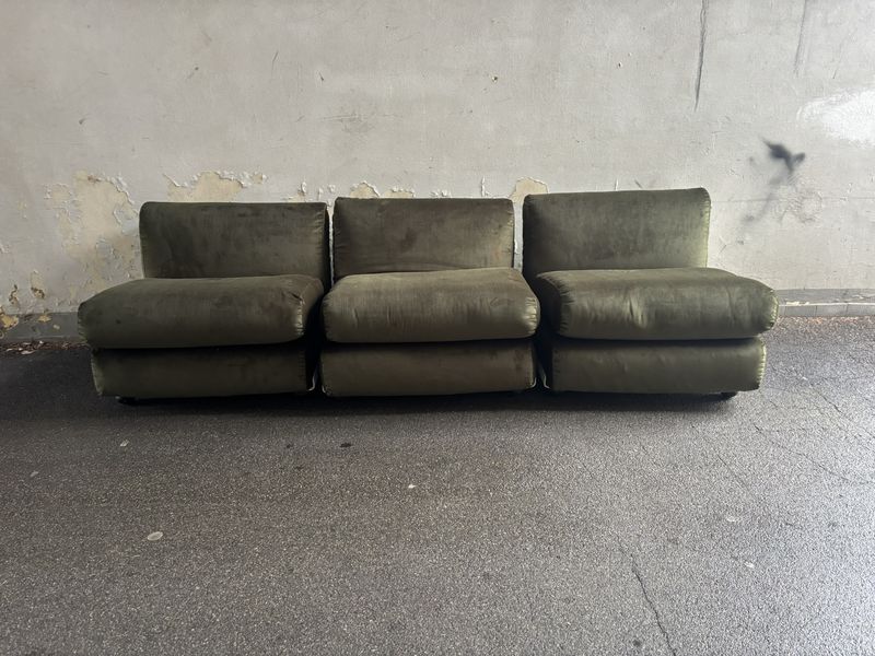 Divano stile anni 50 azzurro – disponibile la coppia di poltrone